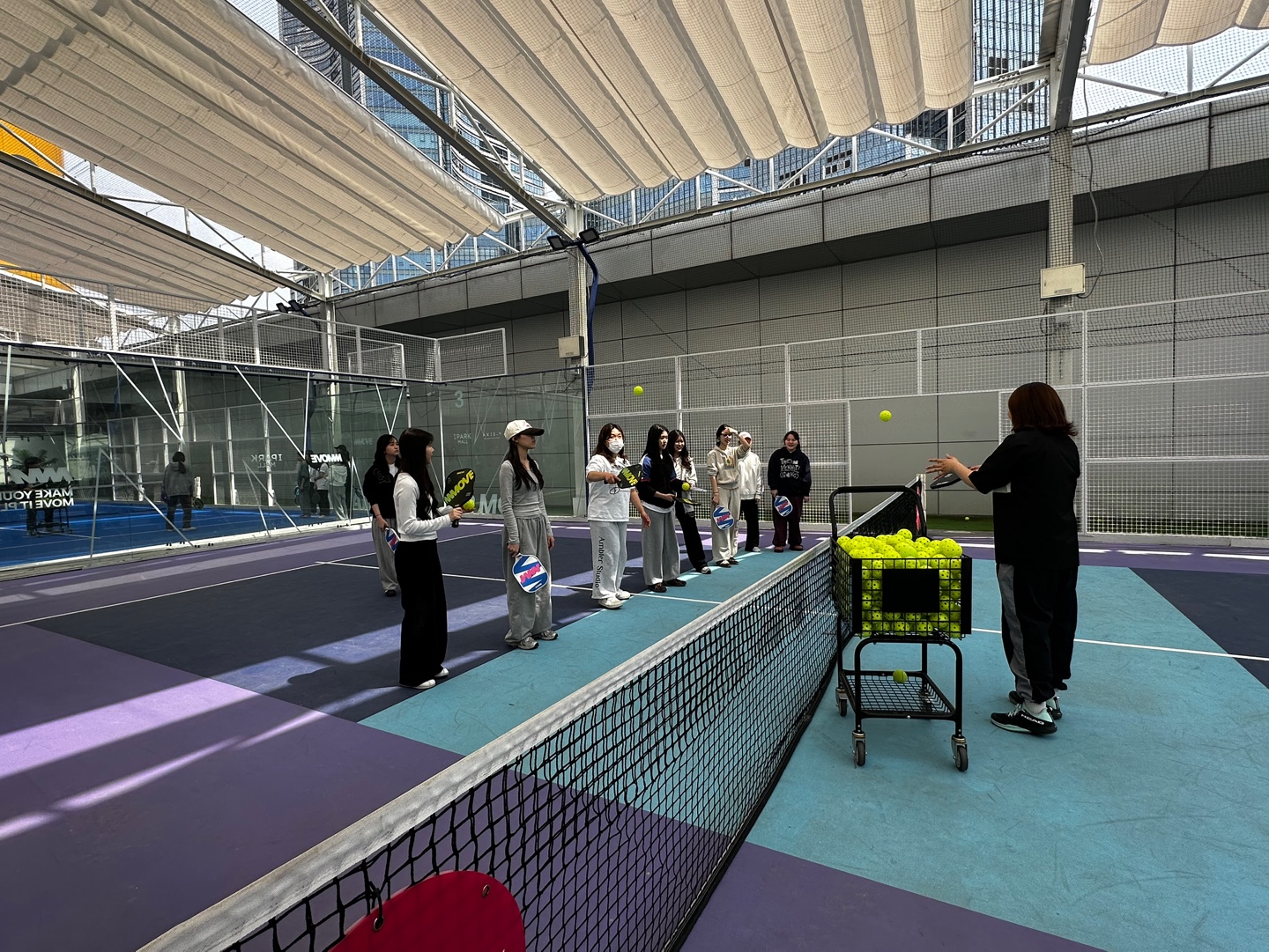 엠무브빠델라운지는 테니스와 스쿼시가 혼합된 Padel Tennis(빠델)과 피클볼 레슨 및 경기가 이루어지는 체육센터로서 스페인·라틴아메리카 등에서 인기스포츠로 자리 잡고 있다.