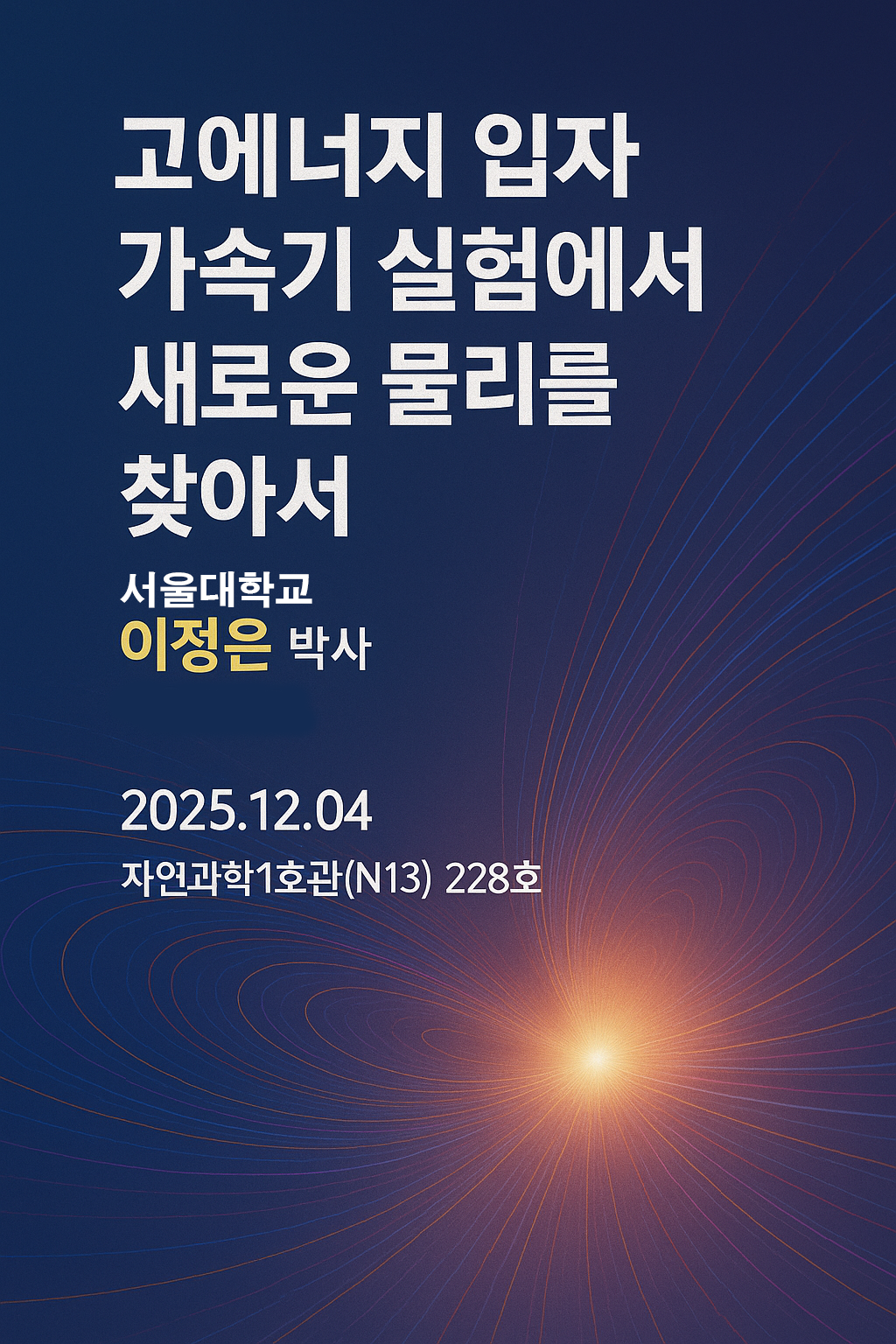 초청하여 "고에너지 입자 가속기 실험에서 새로운 물리를 찾아서" 이라는 주제로 진행되었다.