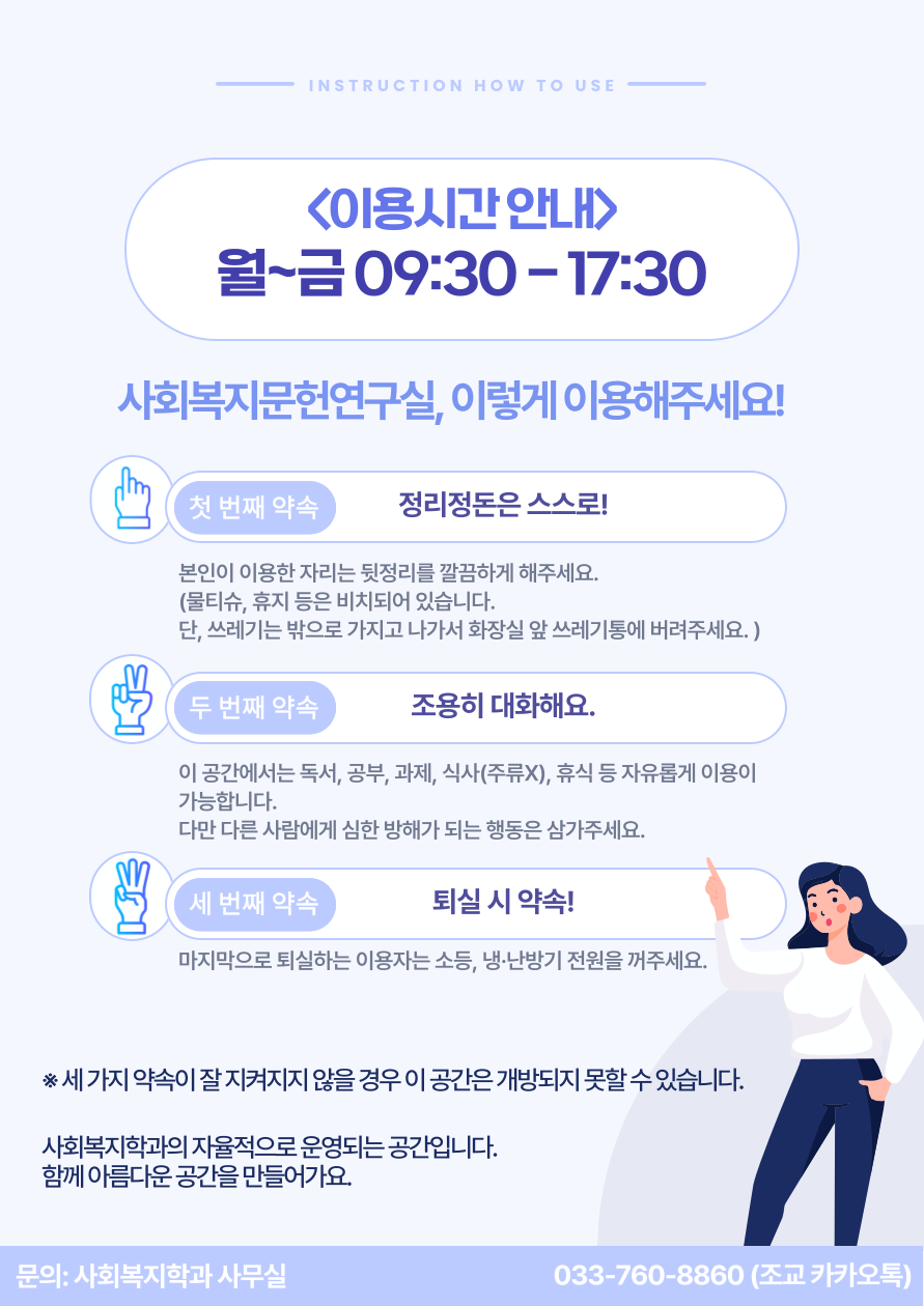 사회복지문헌연구실(W2,502-2호) 개방 및 이용안내